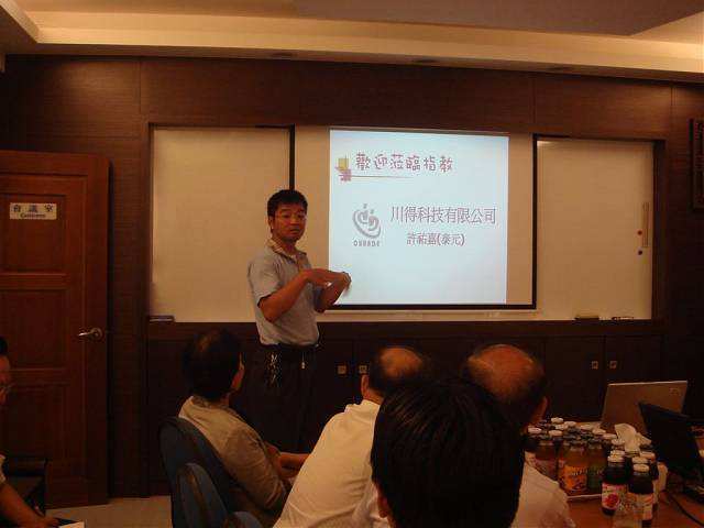 當日下午在宋理事長及聯誼組召集人陳義郎號召下,帶領永續人一夥20多人來到新會友許佑嘉(泰元)的川得科技有限公司裡,在主持人張文雄會友的引述下,聽取佑嘉的成功奮鬥史。 以下是許佑嘉創業過程及經歷介紹。其第一個工作.服務於先統工業有限公司,再轉服務於賢昇貿易股份有限公司工作約2年左右。於1997年成立 川得科技有限公司,幾經轉形近年來致力於工業儀表、自動控制元件的推廣與開發、最終目標為滿足客戶需求。去年營業額超過1億2仟萬元。