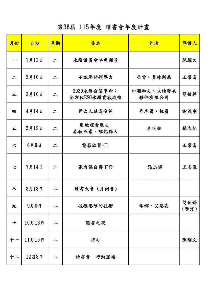 第36屆次級組會(讀書會/第32屆高爾夫球聯誼會)